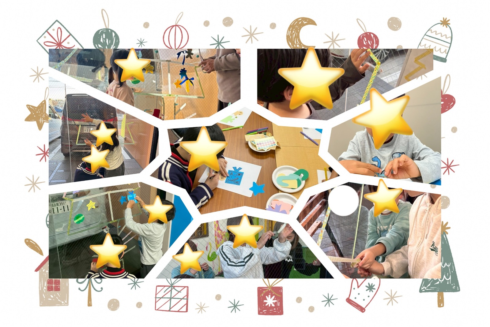 こんにちは!先日2日間をかけてクリスマス工作を行いました。 ガラスいっぱいにマスキングテープを使って、みんなで大きなクリスマスツリーを作りました。 色や貼り方を工夫しながら少しずつ形ができていき、完成が近づくにつれてワクワクした様子が見られました。 オーナメントは一人ひとりがデザインを考え、思い思いに飾り付けをしていきました。 みんなで力を合わせて作ったツリーが飾られ、空間が一気にクリスマスの雰囲気になりました。土屋見学・体験随時受付中です。お気軽にお問い合わせください。