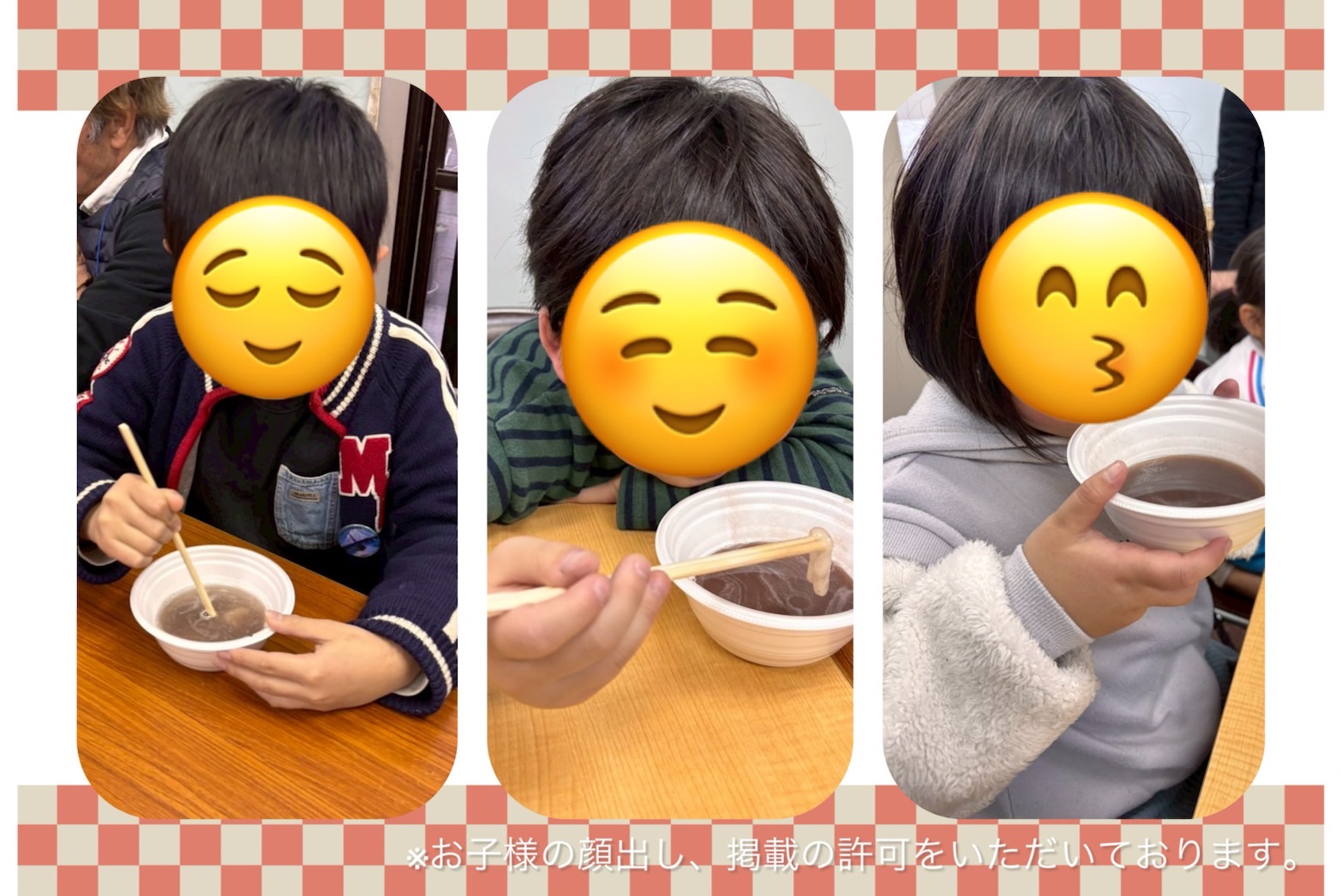 「甘くておいしい!」「小豆が入ってないから食べられる!」と汁まで飲み干す子も見られました。
