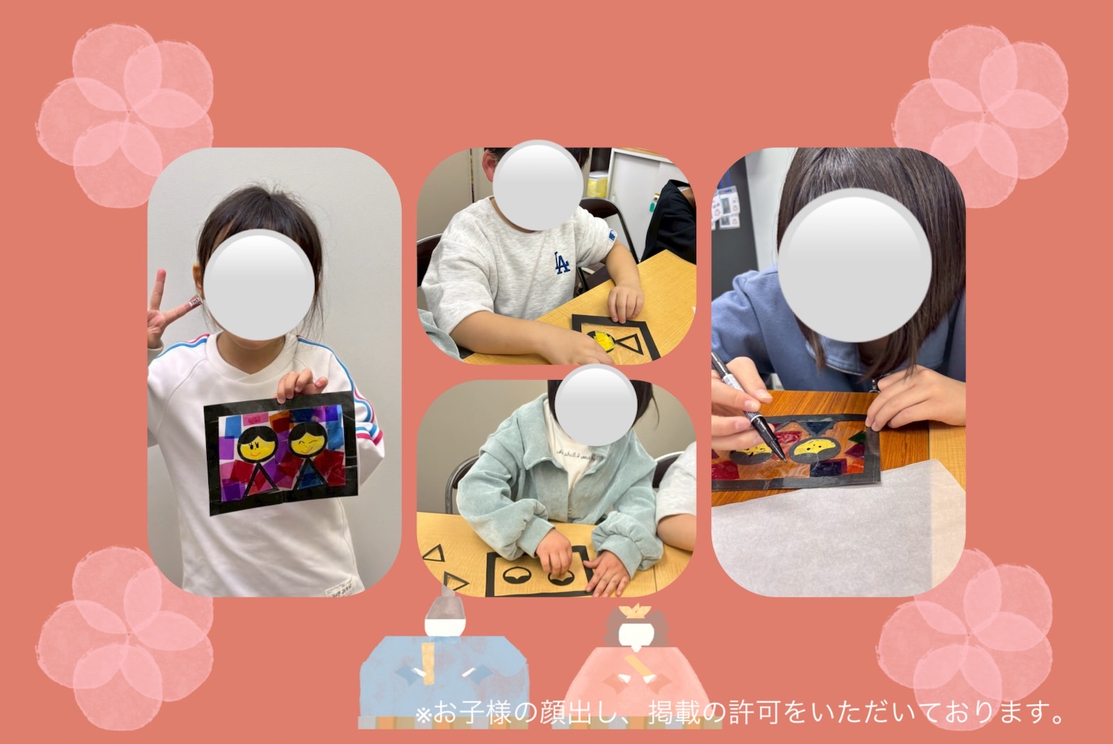 先日はひな祭り工作をしました🎎🌸 ステンドグラス風のお雛様とぼんぼり作りに挑戦💠 細かい作業でしたが、一人一人集中して真剣に取り組む姿が印象的でした! それぞれが思うままに可愛らしい表情のお雛様、お内裏様を描いていて個性溢れる作品に仕上がりました✨ 実際に窓に飾ってみると太陽の光に照らされ、「きれい!」と嬉しそうな子どもたち😊 今度はどんな作品作りに挑戦しようかな✨伊藤見学・体験随時受付中です。お気軽にお問い合わせください。